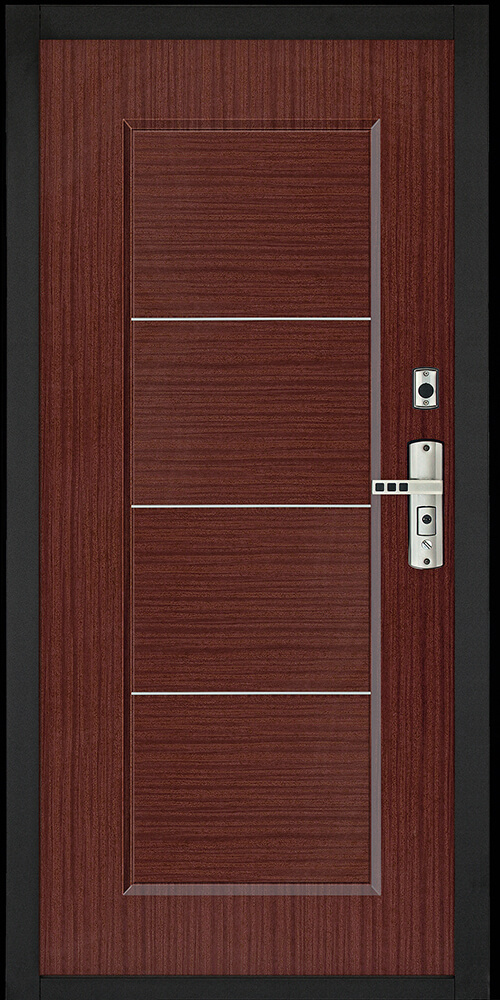 Внешняя сторона двери выполнена по технологии "двойного стального листа" и имеет общую толщину 2 мм. Это исключает возможность механического вскрытия двери обычным переносным инструментом.
